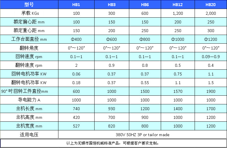 HB系列變位機標準設(shè)計承載100KG—2000KG,廣泛應(yīng)用于環(huán)縫手動或自動焊接以及工件的定位。普遍應(yīng)用于壓力容器、金屬冶煉、電力、化學、金屬結(jié)構(gòu)以及其他行業(yè)。可根據(jù)客戶要求定制。