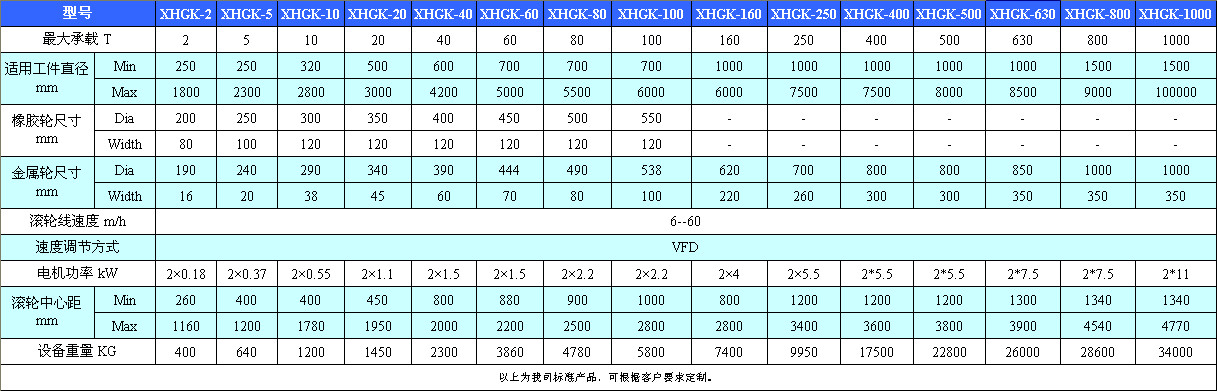 XHGK系列滾輪架為螺釘分檔可調式。標準滾輪架承載2T—250T。用于筒體、管子或鍋爐等工件的回轉和定位。滾輪座可以設計成自調式結構。也可以根據客戶要求定制。