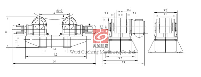 - 交流電機或直流電機(客戶要求)驅動蝸輪蝸桿減速機通過齒輪帶動滾輪旋轉;